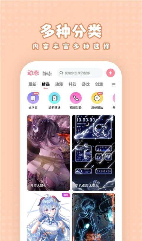 1.体验多种壁纸主题,满足每个用户的喜好。