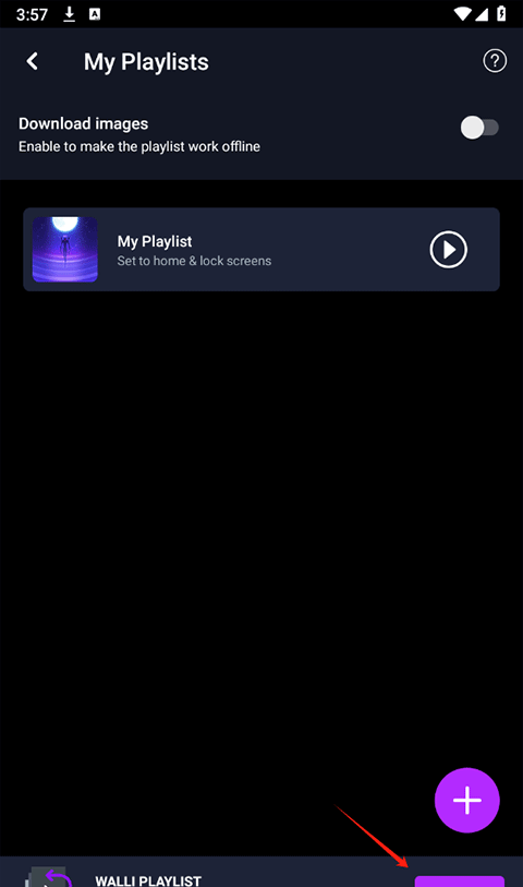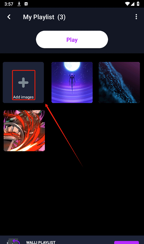 3、点击空白加号添加你喜欢的壁纸,添加完成后点击play