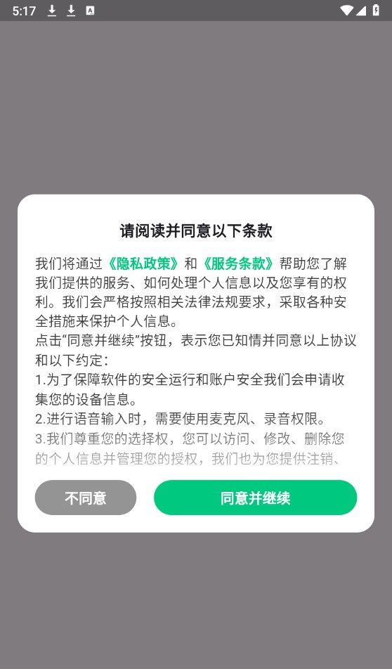 1、下载安装狐说英语app,同意相关的政策与协议之后打开。