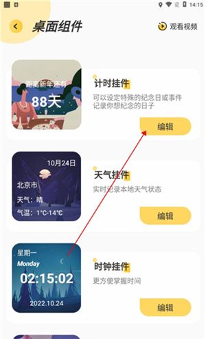 3、开始选择自己需要的桌面小组件点击编辑进入编辑页面。