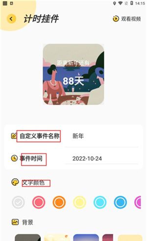 4、根据自己的喜好自定义设置各种信息,比如名称,时间,颜色等。
