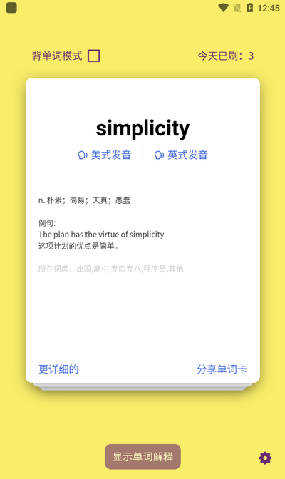 3、即使是初次接触背单词软件的用户,也能够快速上手,专注于学习而不被繁琐的功能所干扰,提升学习体验。