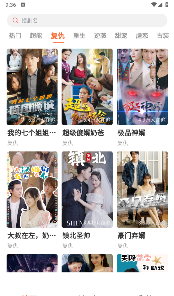 2、进入软件,首页提供了详细的短剧资源分类,包括言情、逆袭以及复仇等。