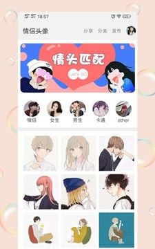 3、丰富的头像分类,女生、男生、动漫、情侣等。