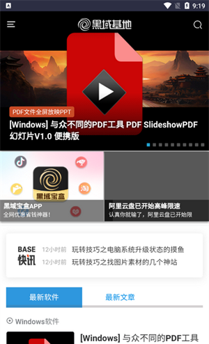 2、打开进入软件,首页中有着最新软件和最新文章两个板块
