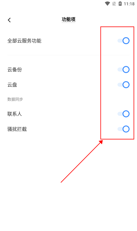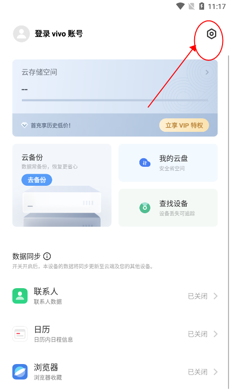 5、然后开启全部云服务功能,即可同步手机相关资料到vivo云服务;