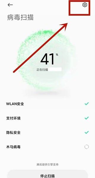 打开手机管家,进入安全中心,点击页面右上角【小齿轮】。