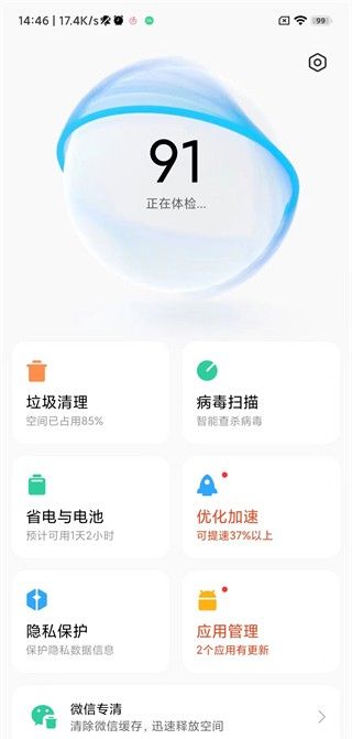 1、全面体检:一键查看手机状态,包括CPU温度、存储空间、电池健康状况等,快速诊断潜在问题。