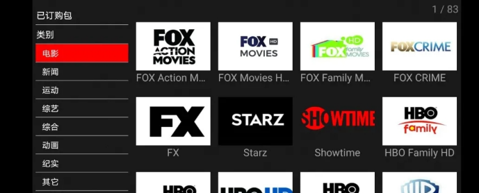 包括全网卫视、地方频道、影院频道、儿童频道、体育频道等,分类齐全,一目了然。