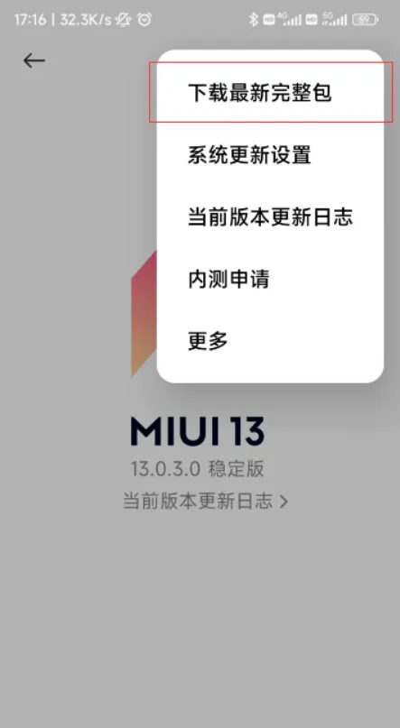 1、在系统更新界面,请注意,必须更新到最新或者保证你现在下载的完整包是你手机正在使用的版本,否则会变成转。点击下载完整安装包