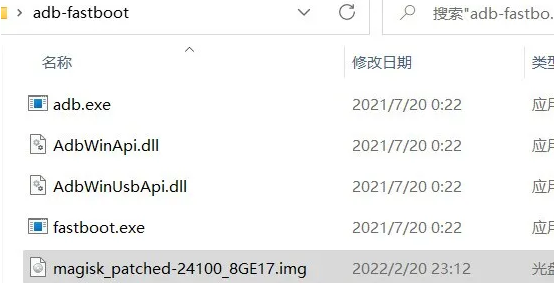 4.1 将重手机上复制回来的magisk_patched-xxxx_xxxx.img复制到adb-fastboot文件夹内