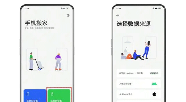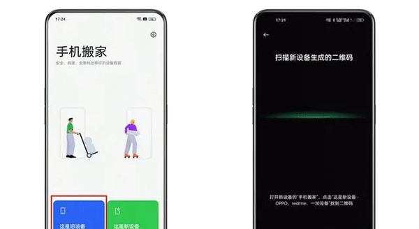 1、进入「手机搬家」APP,在新手机上点击「这是新设备」,选择旧手机的类型后,系统将生成二维码;