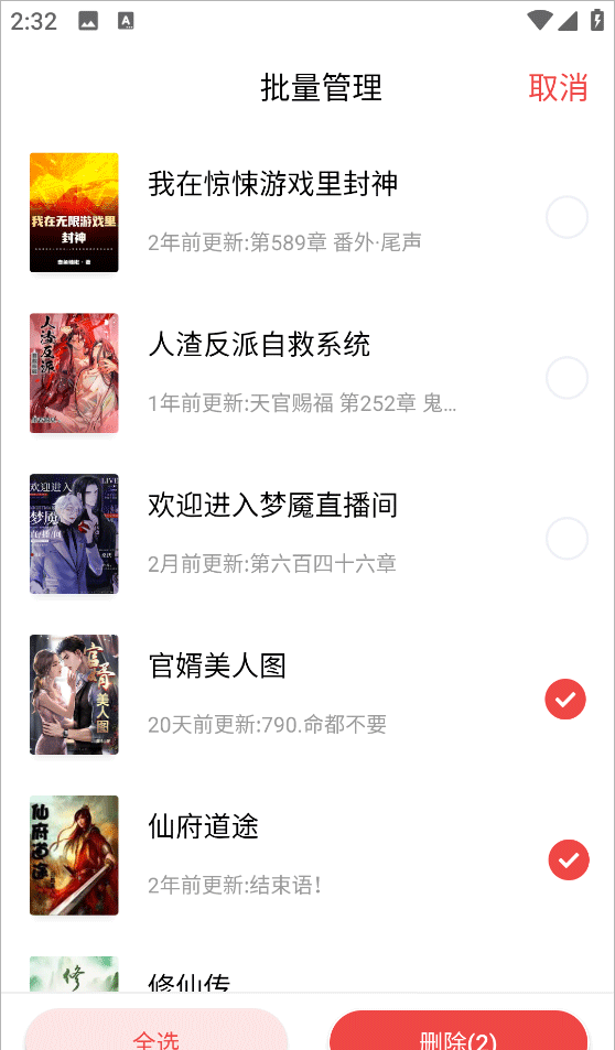 3、在批量管理页面可以一建删除多本小说