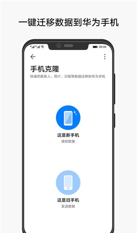 华为换机助手是一款文件传输软件,在旧手机和新手机上安装该应用后,就能飞快地传输文件了。软件支持传输大部分的应用程序和数据,你可以把微信、QQ、微博等应用传输至新手机中,聊天记录也会跟着过去,还支持传输联系人、通话记录、短信等内容,只要是旧手机中的数据大部分都能传。使用起来也是超级简单,只需扫描二维码即可让两部手机连接,然后所有的操作都是自动的,让你传输文件更加方便,换手机不用愁没旧数据。