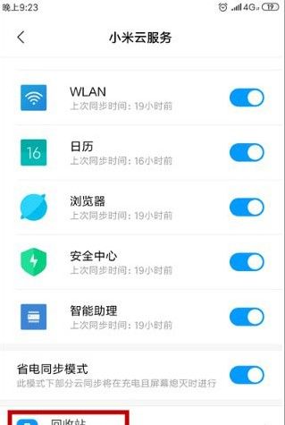 1、下载并打开小米云服务空间app,点击【回收站】选项;