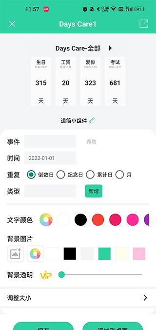 3、更改你喜欢的参数,点击添加到桌面即可设置成功。