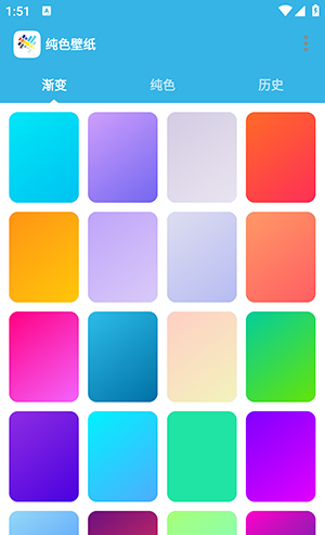 1、打开软件后,可以看到软件提供了渐变壁纸以及纯色壁纸两个类型。