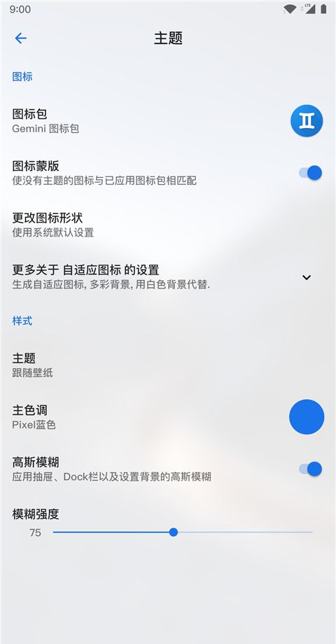 1.要更改主题,您可以选择您最喜欢的图标套件并添加高斯模糊;