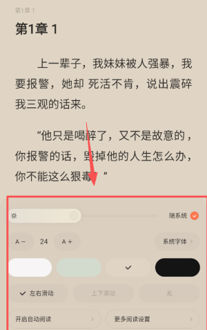 3、在开始阅读之前,请单击屏幕中间以调出设置菜单。在那里,根据自己的习惯调整字体、背景和翻页方式,实现个性化阅读。