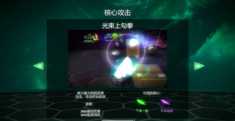 《战斗核心》的故事发生在一个未来的宇宙世界中,经过一场毁灭性的核战争后,银河系陷入了混乱与无序。各个星球和势力为了争夺有限的资源和生存空间,纷纷组建自己的战斗力量,展开了激烈的角逐。在这个充满危机与挑战的宇宙中,玩家将扮演一名来自核战联盟的战士,拥有强大的战斗核心和先进的装备。你将肩负着维护宇宙和平与秩序的使命,与来自不同星球的敌人展开殊死搏斗。