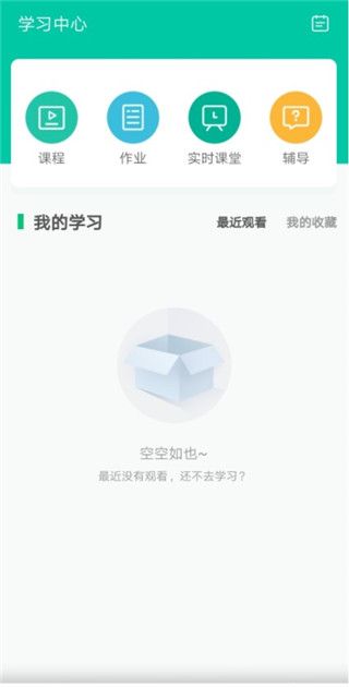 1、登录移动端后,软件主页上有四个功能部分,可以查看课程和作业,进入教师的实时课堂,提供课后辅导。