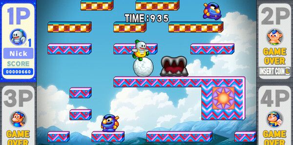 《雪人兄弟2 Special》是由CRT GAMES制作,GRAVITY发行的一款深受各年龄层玩家喜爱的街机经典游戏,是1994年热门游戏《雪人兄弟 2》的现代重制版。这款游戏提供了新的阶段,新的模式等各种乐趣,且支持本地和线上最多4名玩家的合作游戏,当然您也可以享受原版游戏。玩家可以在游戏中体验到丰富的冒险,包括解救被恶魔掳走的公主的主线任务,以及通过多种新模式挑战自我。