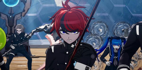游戏采用鲜明的动漫美术风格,角色设计由《弹丸论破》御用画师小松崎类操刀,人物造型兼具个性与辨识度,如SIREI的神秘幽灵形象、学生兵器的机械铠甲设计等。场景细节丰富,例如“不灭之火”的动态燃烧效果、学园废墟的破败质感,均通过高精度建模与光影渲染强化沉浸感。UI设计简洁直观,战斗中的技能范围提示(绿/红/黄/灰方格)与AP计量条便于玩家快速决策。配乐由《弹丸论破》系列作曲家高田雅史打造,结合紧张的战斗音效与日常的舒缓旋律,烘托出绝望与希望交织的氛围。