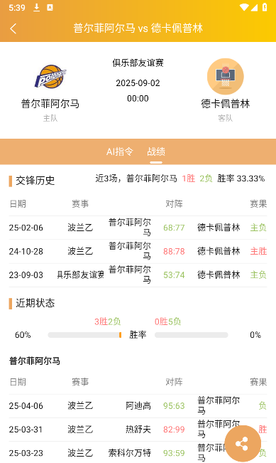 2、数据:拥有非常全面的比赛数据库,查询运动员近期比赛数据。