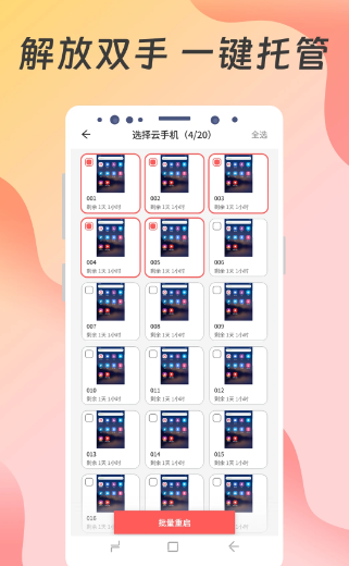 4、一键群控,一台手机就可以批量管理多台云手机,玩游戏。