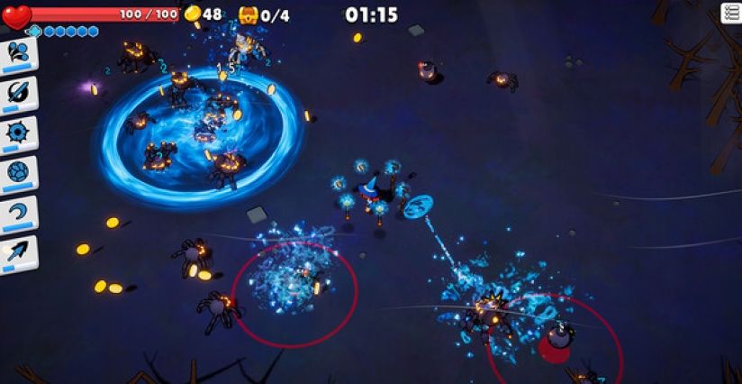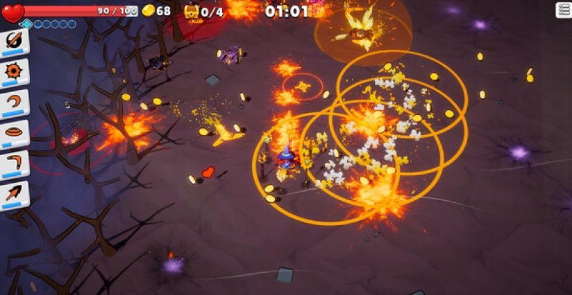 3、地牢中危机四伏,敌人如潮水般来袭。你的目标?活下去。运用你自制的法杖,在每一次遭遇战中击退怪物潮,直到传送门启动,带你前往更深的黑暗。每一次逃出生天,都是战术与创造力的胜利!
