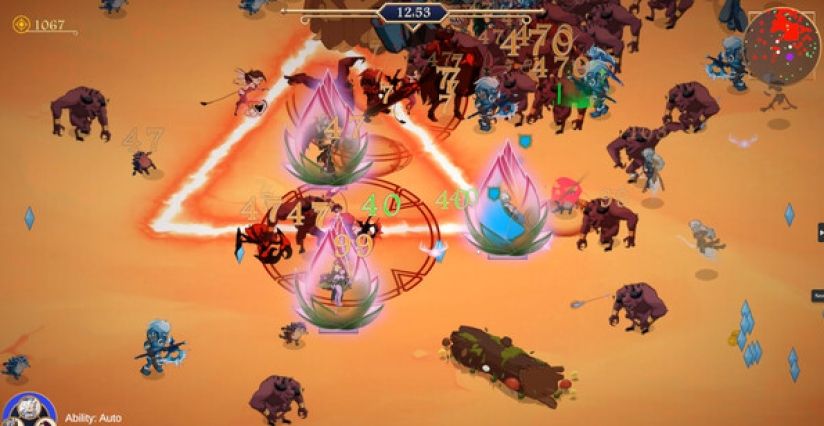 同时操控三名定位鲜明的英雄(如坦克 Alric 嘲讽抗伤、输出 Ignis 火焰轰炸、治疗 Eleria 群体回血),通过按键切换焦点角色,利用 “聚拢敌人 + 范围输出 + 治疗续航” 的铁三角循环应对潮水般的怪物。