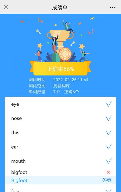3、生词本自动收录:学习过程中错词、难词自动归集,支持专项强化训练。