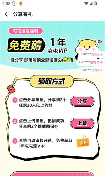 4、进入后根据要求完成任务即可得1年屯屯漫VIP哦。