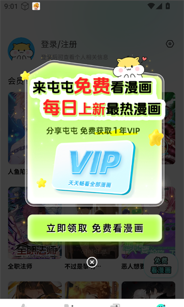 屯屯漫是一款非常简单的免费追漫阅读神器,拥有海量精彩漫画作品,还收藏了其他漫画网站正版授权的漫画书籍,可以让用户自由选择查看,随时随地在线阅读追漫,给用户带来全面的漫画阅读服务,还具有个性化的漫画书架,自由收藏喜欢的漫画作品并关注热门漫画的更新,免费阅读精彩的漫画书籍和内容,能完全满足用户的所有阅读需求,还提供漫画分享功能,可以轻松分享各种优质漫画书籍,喜欢追漫阅读的用户欢迎来这里。