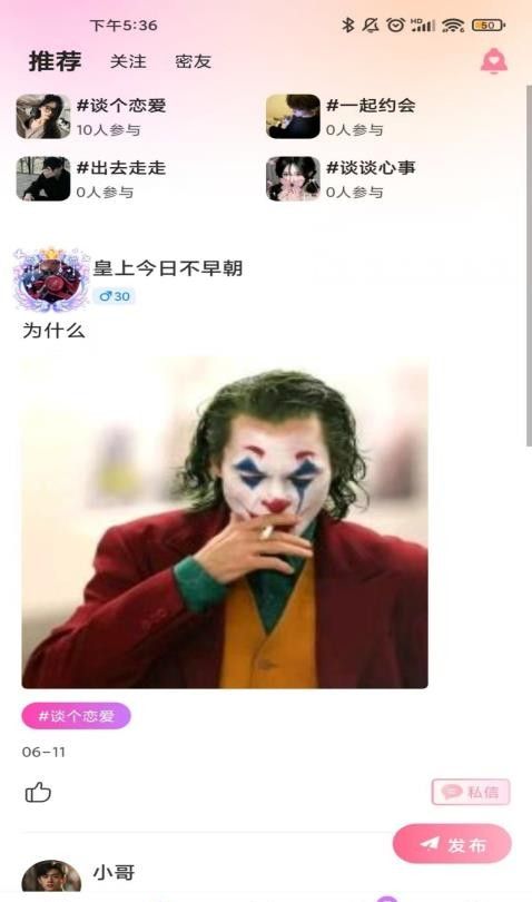 支持用户自由分享更多动态内容,也可以分享自己的生活,与不同的合作伙伴互动;