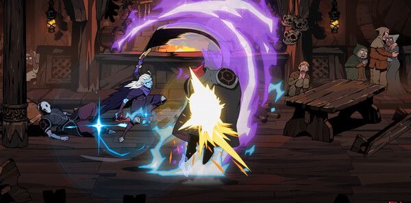 游戏采用全手绘美术风格,由Supamonks工作室操刀,将塔拉姆大陆塑造成充满魔法气息的视觉奇观。从鎏金矿脉的璀璨光影到苍翠森林的幽暗秘境,每个场景均以细腻笔触勾勒,动态光影与粒子特效强化战斗的冲击力。角色动画流畅度尤为突出,连招衔接与技能释放如行云流水,矮人卡尔的火铳后坐力、加兰德拉巨剑劈砍的残影等细节,均展现出团队在《怒之铁拳4》中积累的动作设计功底。