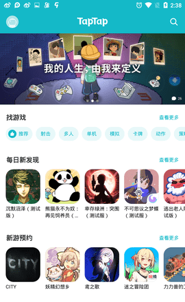 4、发现部分相当于一个游戏库,主要根据类型、新游戏和测试区域分为几个部分。