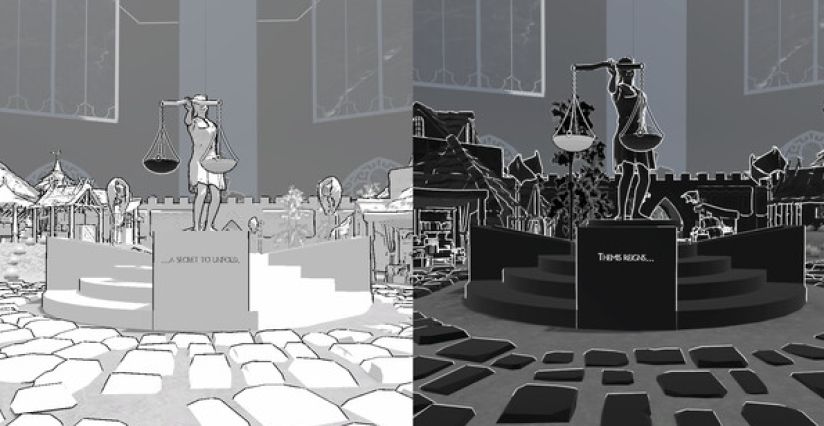 一对中年夫妻在图书馆的书架间发现了一本古书。这本书以未知的语言书写而成。他们俩受到古书的吸引,其中一人出于好奇翻开了书页。霎那间,刺眼的光芒将两人卷入了一处名为谜智的神秘空间。在这个世界中,他们发现自己被困在了一座古老而没有色彩的图书馆内。