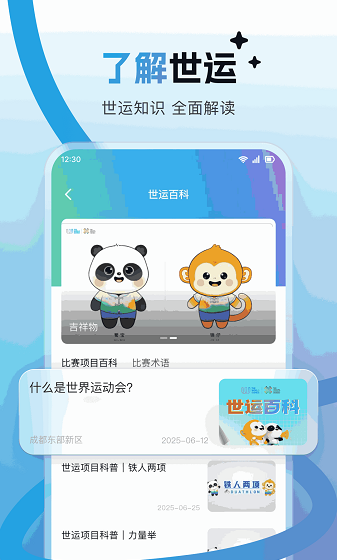 世运通是一款专为成都世界运动会打造的赛事资讯软件,软件中将各种赛事资讯进行了权威报道,用户可以轻松掌握权威报道的各种世运赛事资讯信息,此外,软件中还推送有旅游、美食、娱乐、文化等多方面的信息可供用户查看,为你提供成都指南,让你可以将成都的各种资讯信息一手掌握,可以根据个人喜好需求选择资讯频道查看相关的资讯动态信息,让用户可以将各种资讯信息一手掌握。