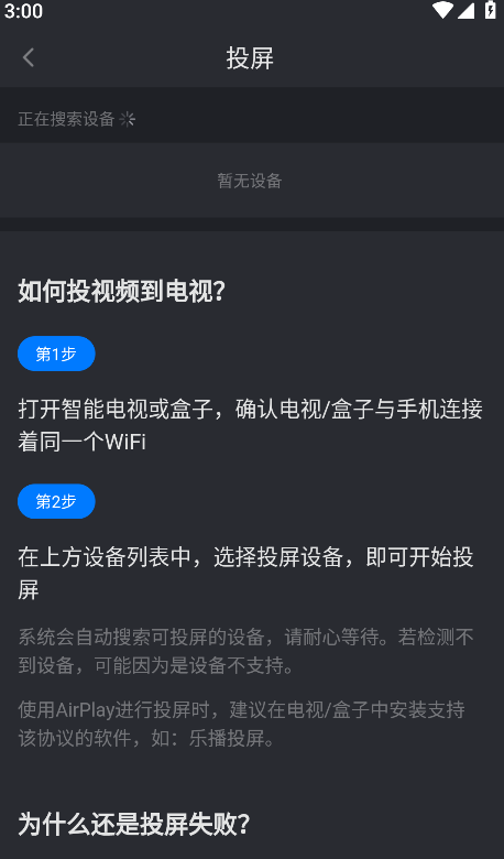 3、打开电视,确认电视和我们的手机连接着同一个WiFi,然后在上方设备列表中,选择投屏设备,开始投屏即可。