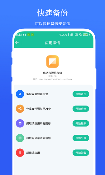 APK安装包管家是一款手机应用安装包管理软件,软件支持用户将手机安装的应用安装包提取出来并保存到本地进行备份或将该安装包一键分享给局域网好友。软件也支持提取应用安装包内所有图标并保存到手机相册。允许用户管理手机上的APK文件,包括查看、提取和备份安装包。提供安装、卸载、备份、分享等多种操作功能,方便用户管理手机上的安装包。可以快速查找手机上的安装包,让用户更轻松地管理和操作应用程序。