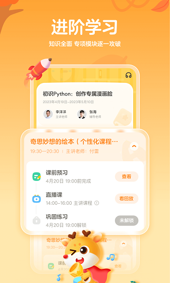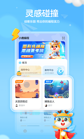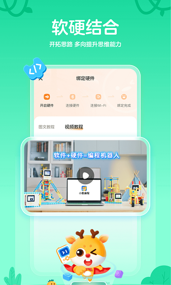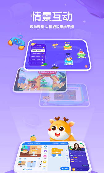 小鹿编程是一款帮助儿童编程初学者的教育学习软件,它将提供多个年龄段的编程学习资料,不拘束于复杂的代码理解,会以更直观的动画以及画面互动方式为孩子讲解编程的原理,更好的培养编程逻辑思维,以更科学、全面的知识结构和课程体系,培养少儿“四大思维”和“六大能力”,再通过软件编程配合硬件机器人让你更好的进行模拟学习。根据直播课领域的丰富经验,以及资深的教研团队,专注于培养集计算思维、工程思维、创新思维于一身的编程天才少年。