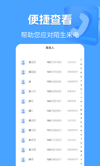 2、海量号码数据库支持:覆盖全国3000多个县、市、区代码和1亿多个手机号码段,识别准确率高。