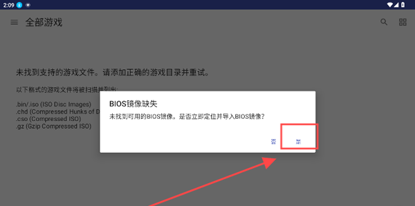 2、之后再点击启动bios,系统会提示bios镜像缺失,选择是导入bios。