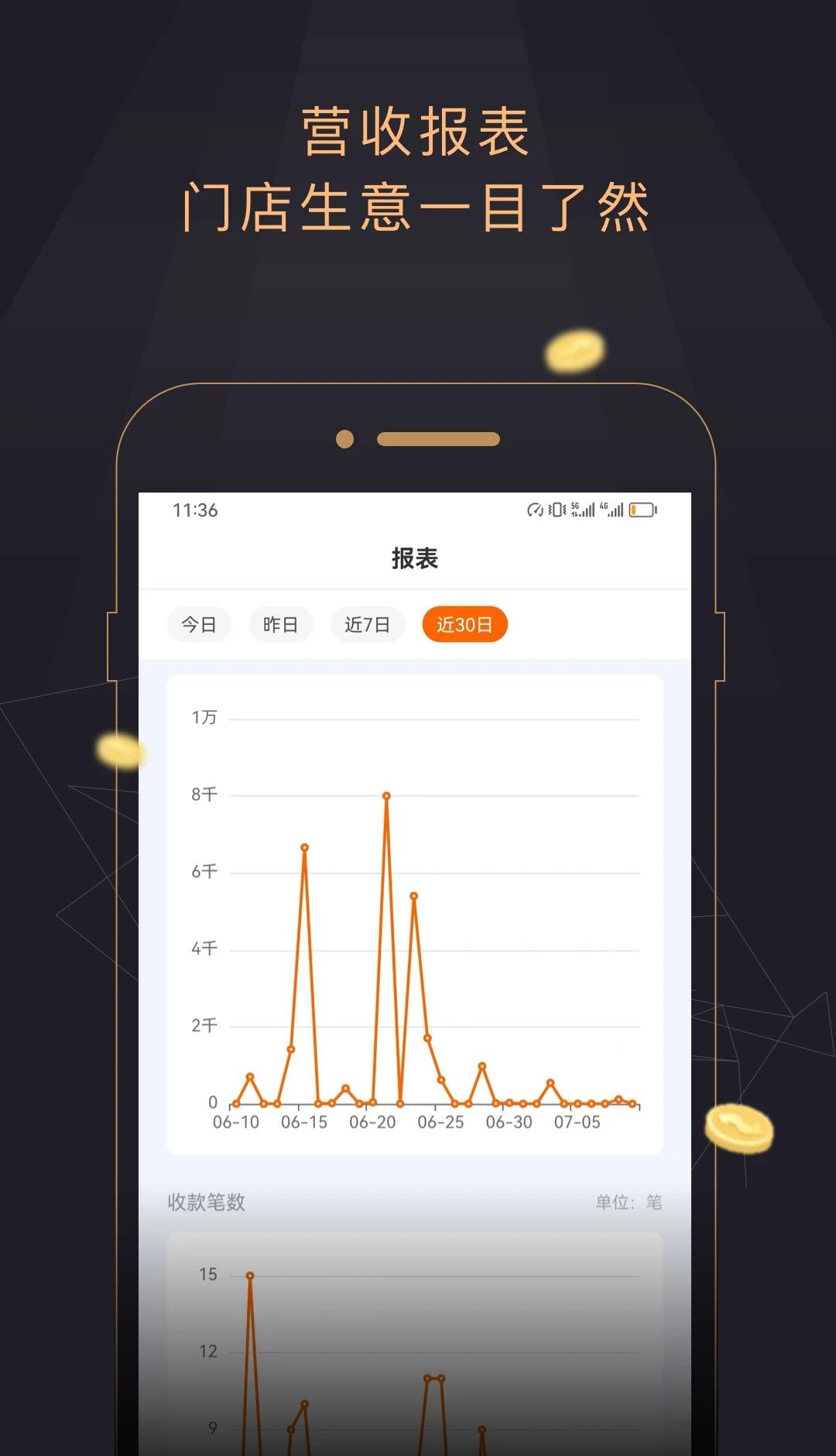 3、数据可视化:店铺数据一目了然,以图表、报告等形式显示,便于商家快速掌握业务情况。