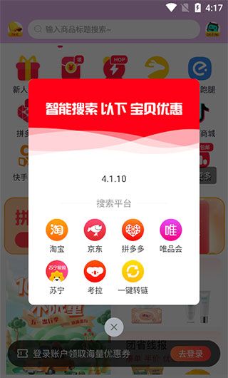 1、软件会自动在淘宝、京东等购物平台上搜索便宜有优惠的商品。