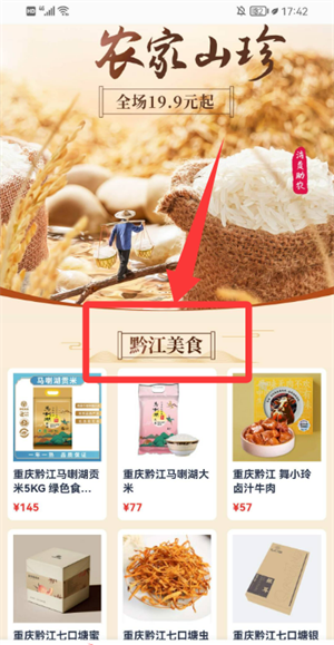 2、进入商城浏览黔江美食,查看该分类下商品。