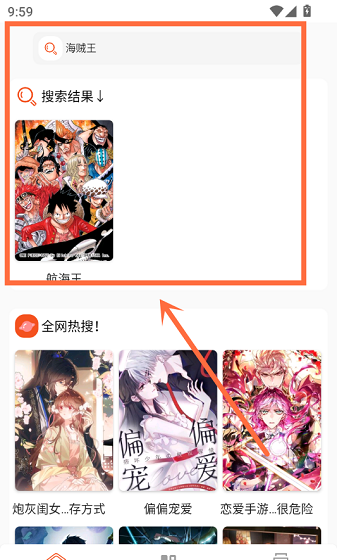 2、我们可以点击最上面的搜索栏进行漫画搜索操作。