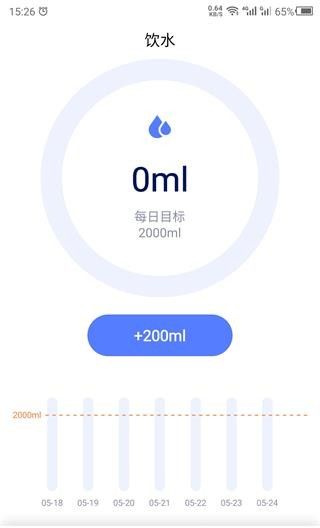 3、喝水打卡页面!只需轻轻一点,每天的喝水量自动记录到app中!
