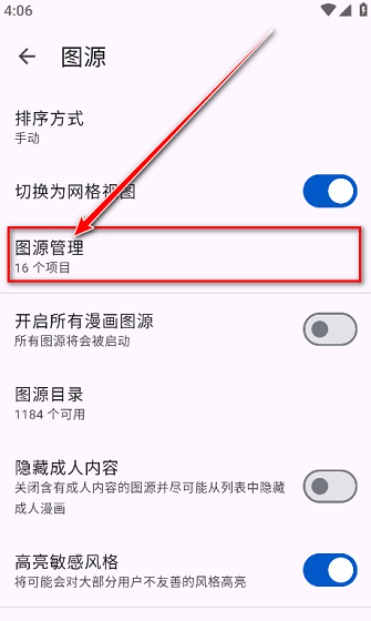 4、点击图源管理。